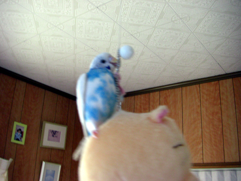 先代ののぞみは、花恋の頭が大好きで、花恋には肩ではなく頭に止まっていました。なので、学校へ行く前には、必ず、ティッシュで糞をとってました。のぞみにつきあってもらって、スクワットをするのも習慣でした。