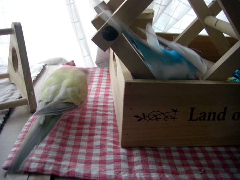 花恋は、背が足りない分、追っかけまわしてしまうので、嫌がられるようです。そばに来てくれるだけ、のーちゃんのほうが、ケージに戻しやすいです。