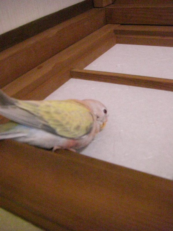 今日は、初めて、音を立てずに障子の枠に止まれました。